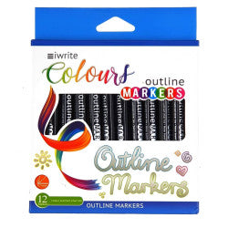 iWrite Colours Outline Markers - Outlining Colouring Markers 12 Pack