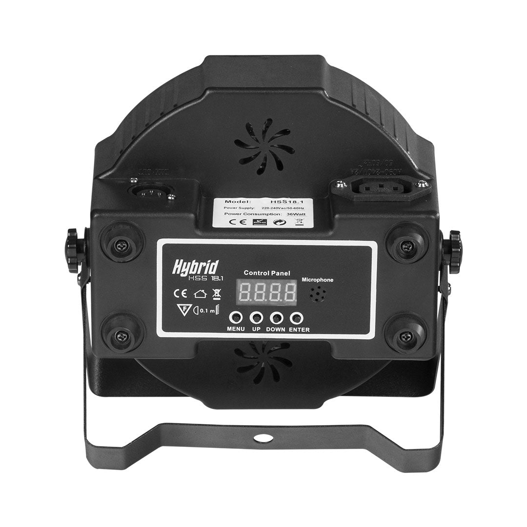 The Hybrid HSS18.1 is a basic but professional stage lighting model. It includes single RGB LEDs, and gives off bright and colourful beams. Ideal for occasions such as church services, weddings, pool parties and house parties. Decorate your walls, trees and surroundings to create a specific atmosphere for you events.